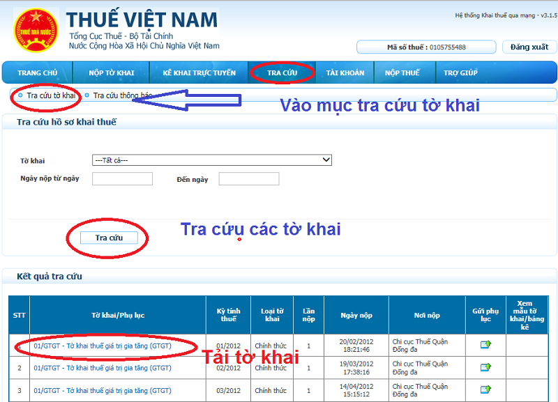 Cách 2: Kiểm tra trên các tờ khai đã ký