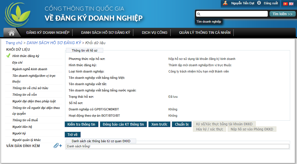 Bước 1: đăng nhập website https://dangkykinhdoanh.gov.vn/. Đây là cổng thông tin doanh nghiệp quốc gia, do Bộ Kế Hoạch Đầu Tư thực hiện.Bước 2: Truy cập vào menu > Dịch vụ công > Đăng ký kinh doanh qua mạng và chọn hình thức là thành lập mới giao diện đăng ký sẽ hiện ra