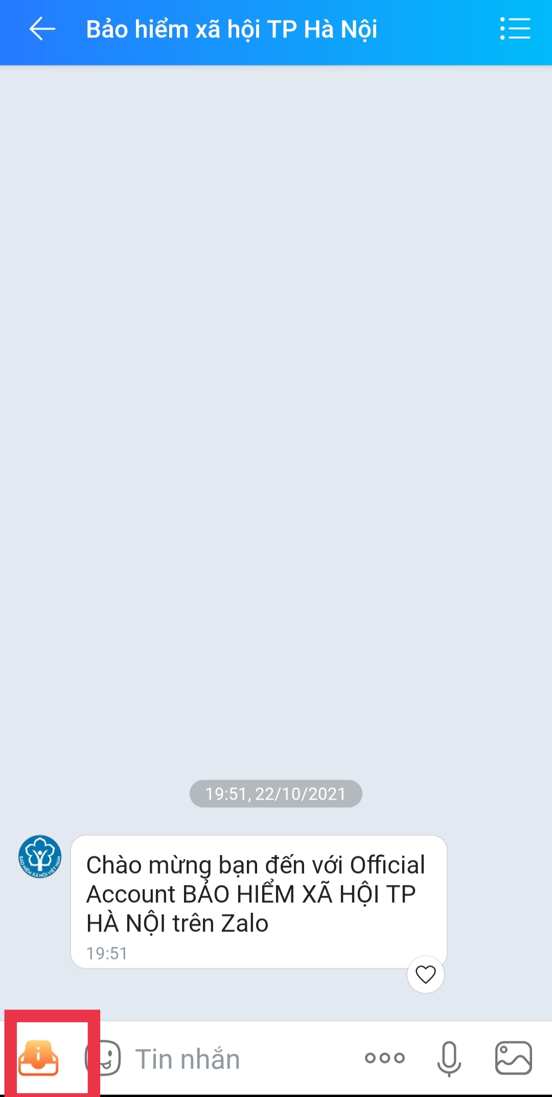 Bước 1: Mở ứng dụng Zalo trên điện thoại, tìm kiếm cơ quan Bảo hiểm xã hội tỉnh/thành nơi mình đăng ký nhận hỗ trợVí dụ: Bảo hiểm xã hội Hà Nội; Bảo hiểm xã hội TP. Hồ Chí Minh