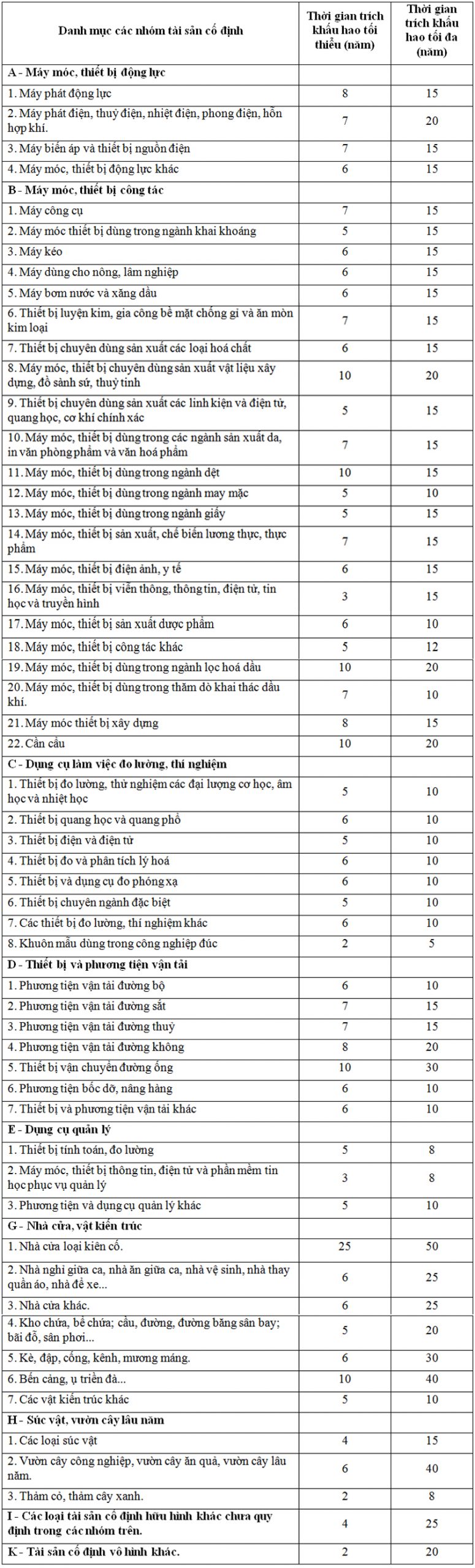 Thời gian trích khấu hao tài sản cố định phải căn cứ vào khung thời gian đã được quy định tại thông tư 45/2013/TT-BTC, cụ thể như sau: